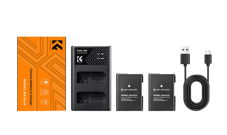 2 аккумулятора EN-EL14 + зарядное устройство K&F Concept KF28.0020