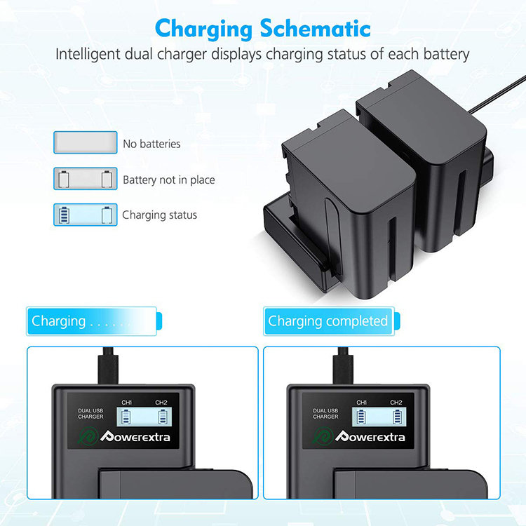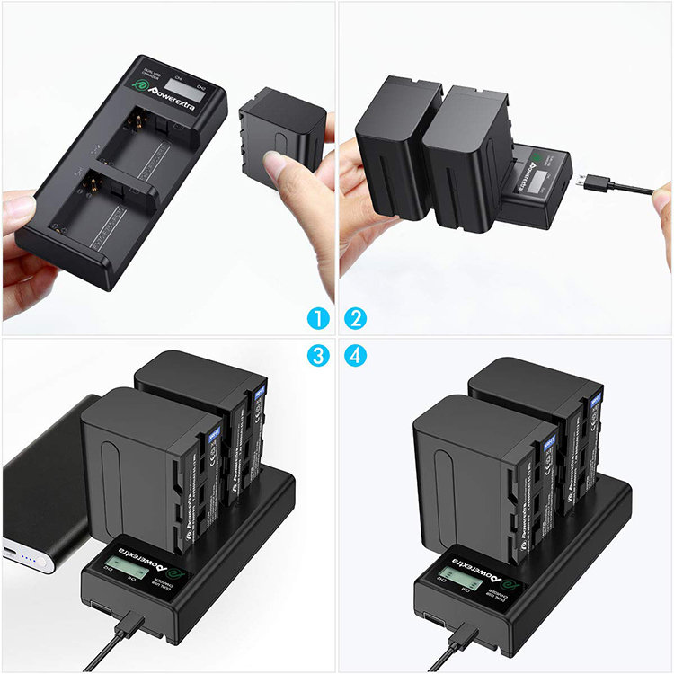 2 аккумулятора NP-F970 + зарядное устройство Powerextra SN-F970LCD-B (micro USB)