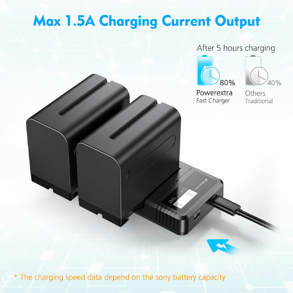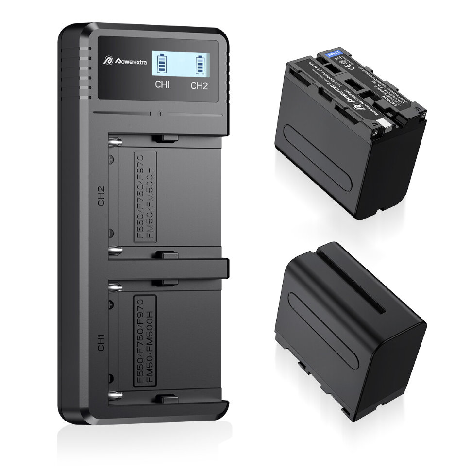 2 аккумулятора NP-F970 + зарядное устройство Powerextra SN-F970TPC-B (Type-C)