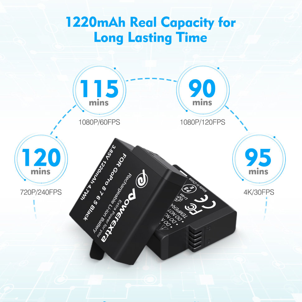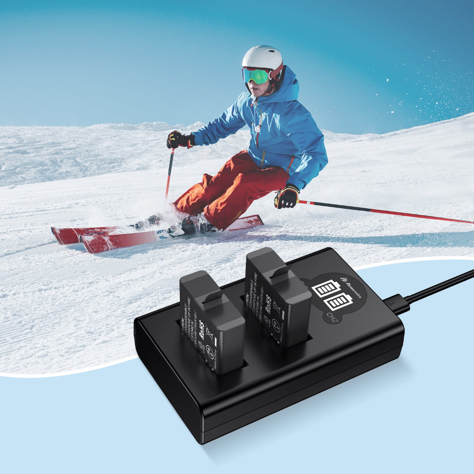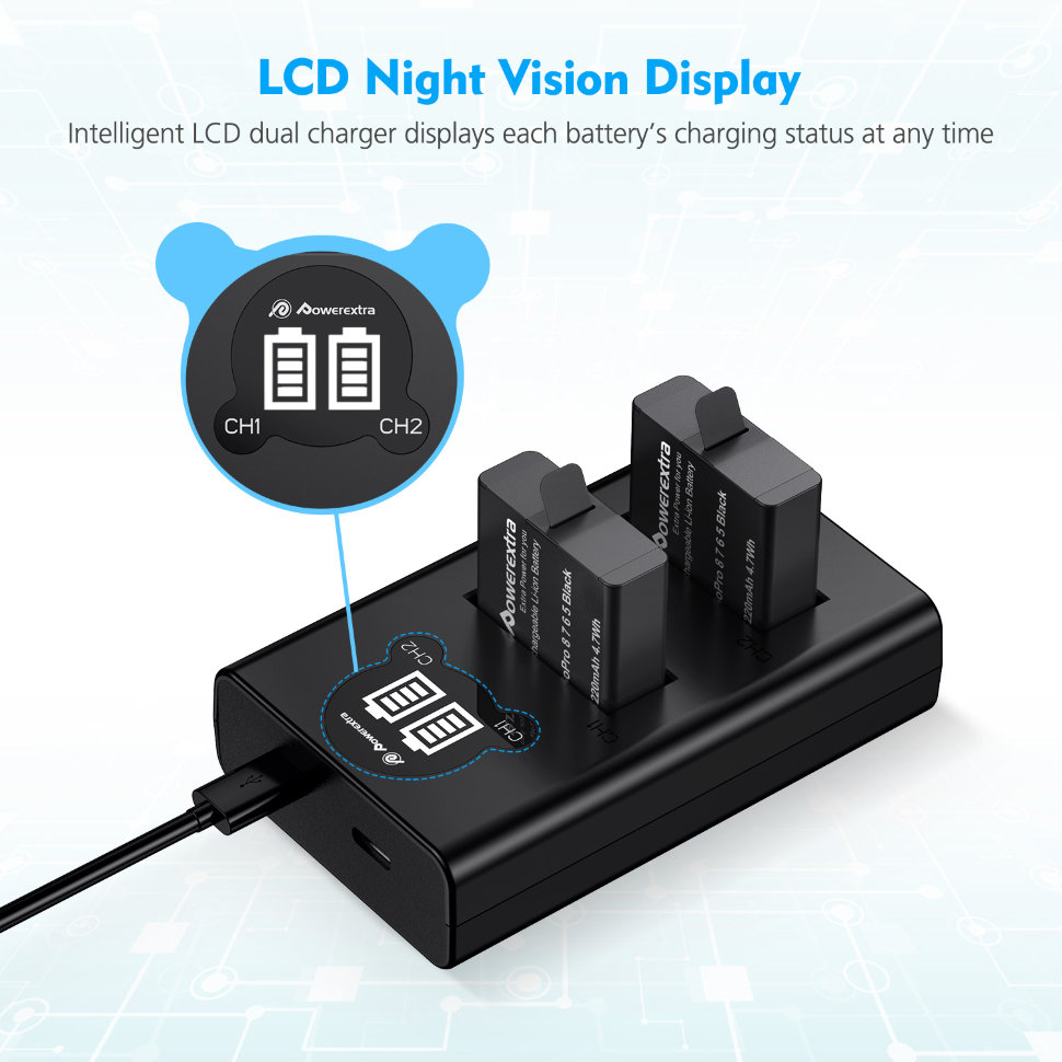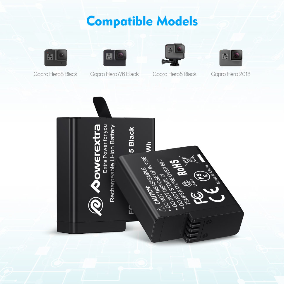2 аккумулятора + зарядное устройство Powerextra для GoPro