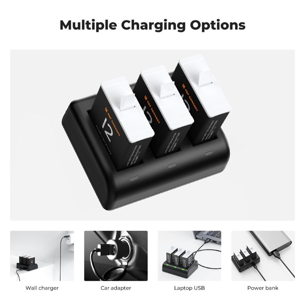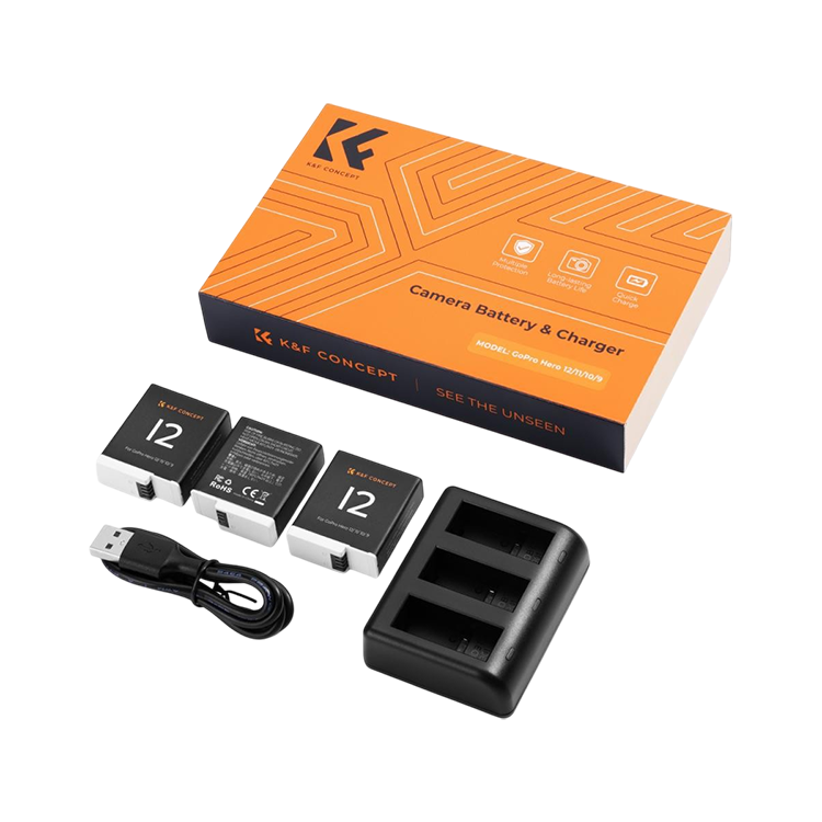 3 аккумулятора + зарядное устройство K&F Concept для GoPro Hero 9/10/11/12