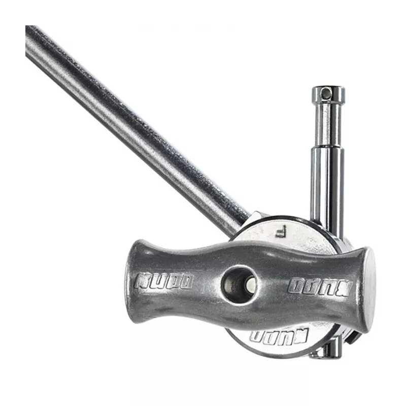 Адаптер KUPO KS-022 — стальной штырь длиной 12.7 см и диаметром 16 мм — предназначен для установки в головку грипа, создавая точку крепления для осветителя и аксессуаров с гнездом 5/8". Стопорное кольцо предотвращает выскальзывание из зажима, накатка обеспечивает надежную фиксацию, а резьбовые отверстия 1/4" и 3/8" на торце позволяют крепить дополнительные аксессуары |