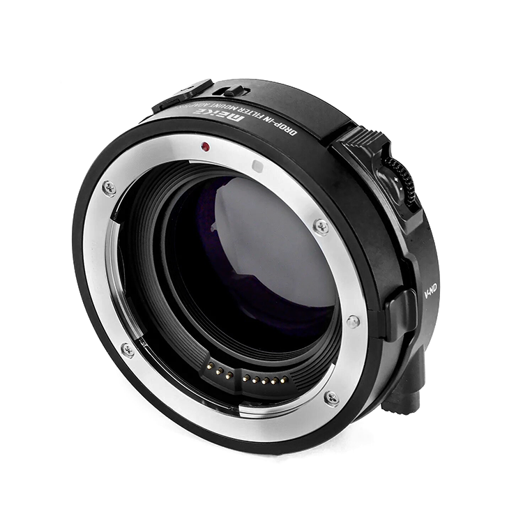 Необычный адаптер для установки объектива с байонетом EF/EF-S на беззеркальную камеру Sony E-mount. В конструкции предусмотрен слот для сменных светофильтров Meike. Благодаря этому можно исключить подбор нужного диаметра фильтра и долгой установки |