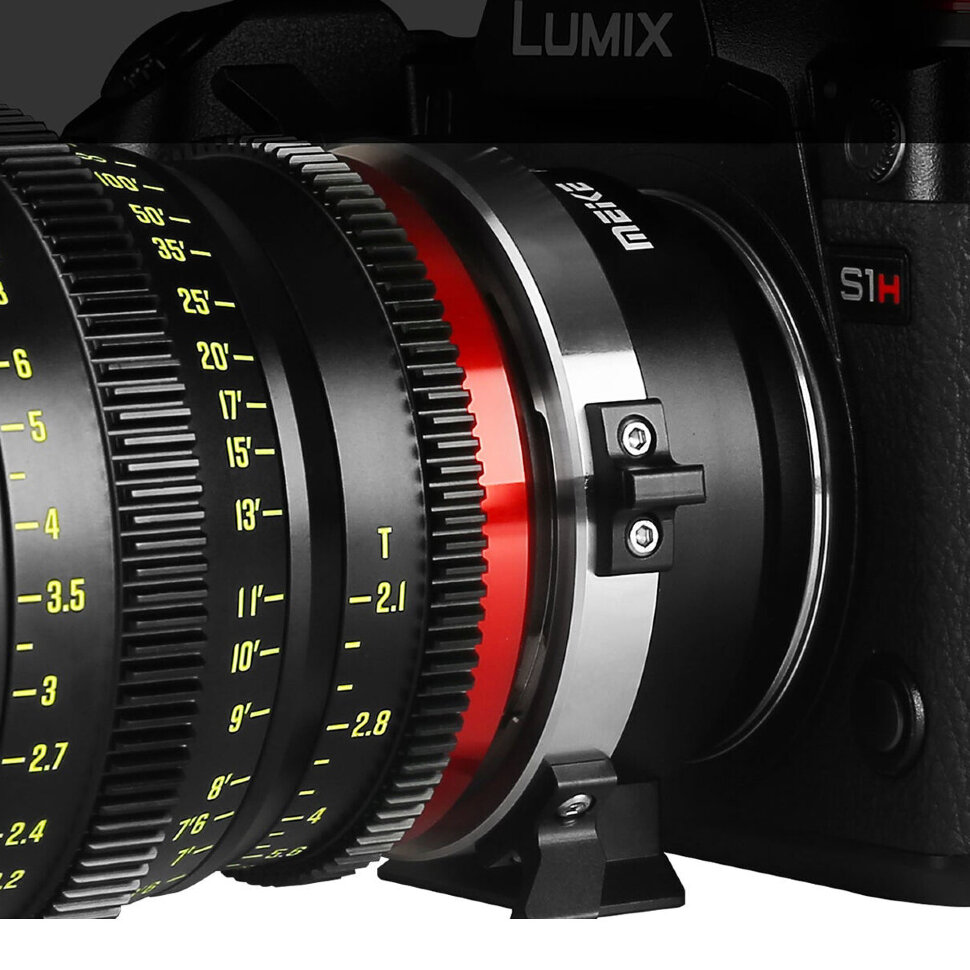 Адаптер для установки кинообъектива с креплением PL-mount на беззеркальную камеру Sony с байонетом E-mount. Его ключевая особенность - прецизионная металлическая конструкция, сохраняющая точную дистанцию фокусировки и бесконечность, что обеспечивает корректную работу оптики без потери качества изображения. Механизм с ручным фиксатором и блоком быстрой смены ускоряет установку и снятие объектива на площадке, а интегрированная площадка с резьбой 1/4" позволяет закрепить тяжёлую оптику на штативе через адаптер, снижая нагрузку на байонет камеры. Благодаря использованию прочных материалов с защитой от коррозии и матовому покрытию для подавления паразитных бликов, адаптер весом всего 256 грамм обеспечивает надёжное и долговечное соединение в профессиональных съёмочных условиях