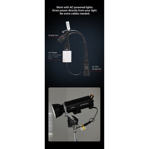 Адаптер питания для системы Move LightGo через порты переменного тока и Type-C для бесшовной интеграции без лишних проводов |