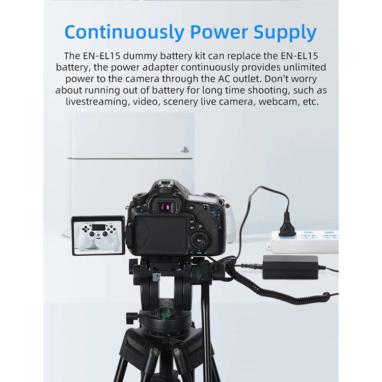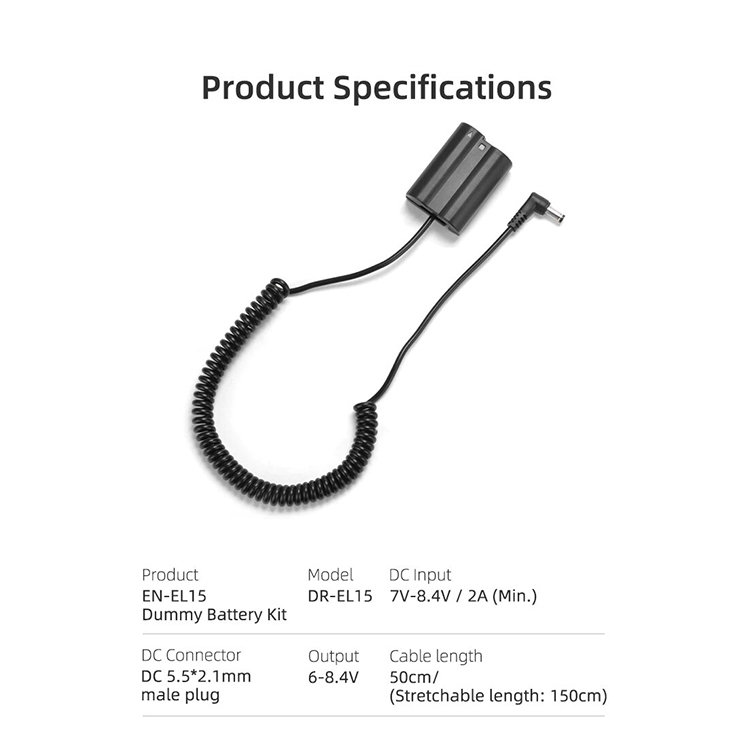 Фиктивная аккумуляторная батарея для питания камеры Nikon. Позволит заменить аккумулятор EN-EL15 и обеспечить камере питание. Батарея имеет встроенную новейшую усовершенствованную схему декодирования, оснащена кабелем со штекером DC 5,5*2,1 мм |