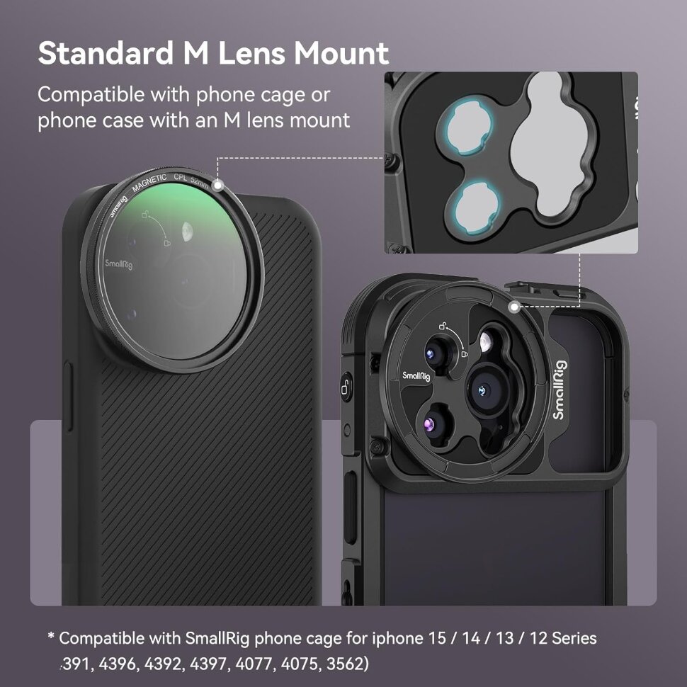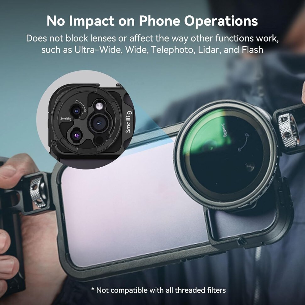 Обновленный адаптер для установки магнитного светофильтра диаметром 52мм на клетки и чехлы для смартфона с мобильным байонетом Sirui/Moment. Совместим с новыми моделями клеток для iPhone 15 |