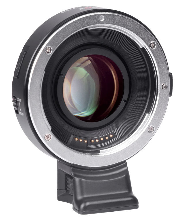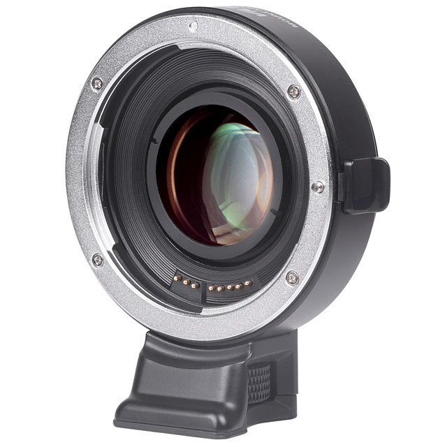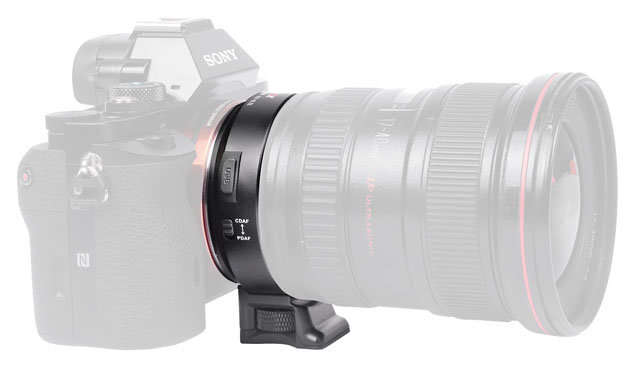 Адаптер позволяет установить объективы Canon EF на камеры с байонетом Sony E-mount. Для компенсации кроп-фактора в конструкцию добавлена система линз для APS-C сенсора. Фокусное расстояние увеличивается в 0,71 раз, а диафрагма на 1 ступень, и теперь вы можете снимать на кропматрицу как на полнокадровую |