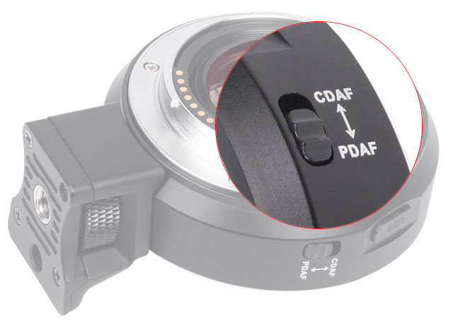 Для смены режима фокусировки, необходимо выключить камеру, отсоединить адаптер, переключить режим и установить адаптер обратно |