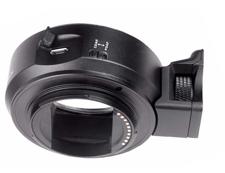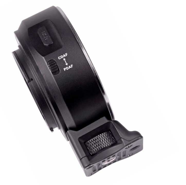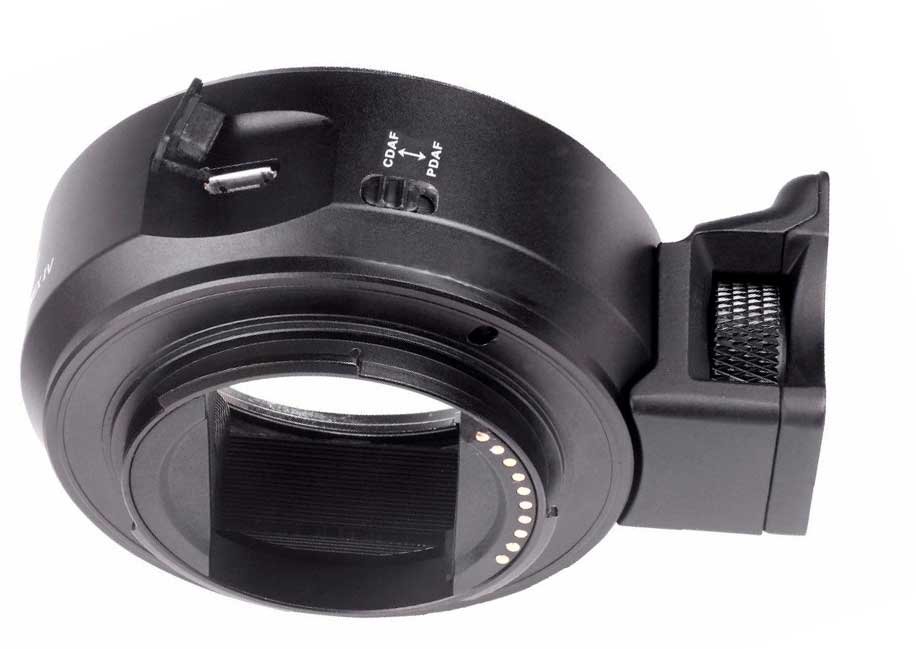 | На адаптере присутствует USB порт с возможностью обновления прошивки устройства и выбора между фазовым и контрастным автофокусом |