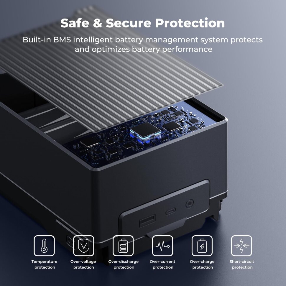 Безопасность и адаптивностьИнтеллектуальная система управления BMS включает шестиуровневую защиту: температурный контроль, предотвращение перегрузки по току и напряжению, защиту от короткого замыкания и глубокого разряда. Огнестойкий корпус из поликарбоната с металлическим каркасом и антискользящим покрытием обеспечивает устойчивость при работе в полевых условиях. Встроенная подсветка активируется для удобства подключения оборудования в условиях недостаточной освещенности |