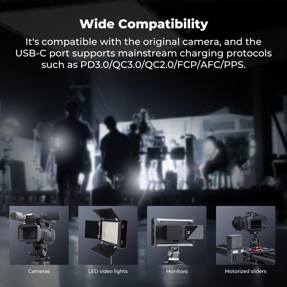 Мощность и совместимость для профессиональной работыАккумуляторNP-F970 емкостью 10500 мАч обеспечивает длительное питание для камеры, осветителя, монитора или иного оборудования для съёмки. Поддержка быстрой зарядки Power Delivery 45 Вт через порт Type-C позволяет быстро восполнять заряд аккумулятора в перерывах между съемками, а также вы можете использовать его в качестве power bank для различных гаджетов |