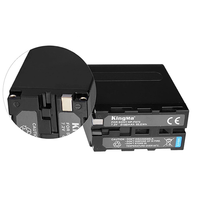 Литий-ионный аккумулятор типа Sony NP-F970 для профессиональной техники. Батарея имеет контакты из чистой меди для более эффективной работы, и корпус из жаростойкого АБС пластика |