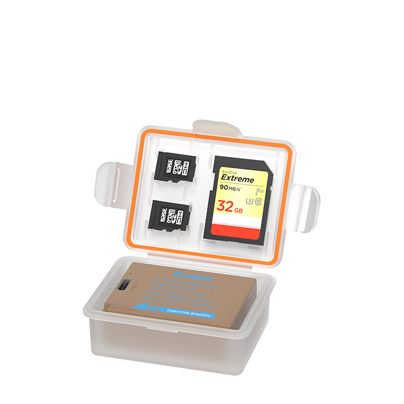 В комплекте с аккумулятором предусмотрен прозрачный кейс со слотами для карт памяти (карты памяти в комплект не входят), а также зарядный кабель Type-C - USB для подключения к различным устройствами |