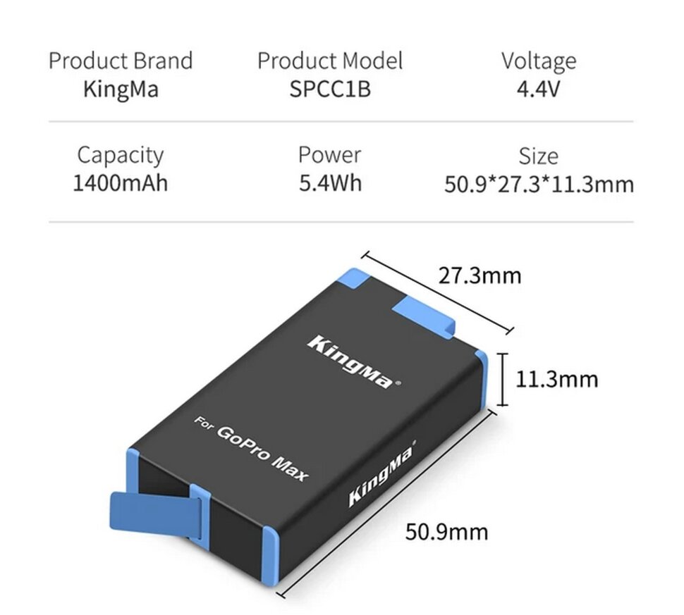 Аккумулятор Kingma SPCC1B 1400mAh для GoPro Max