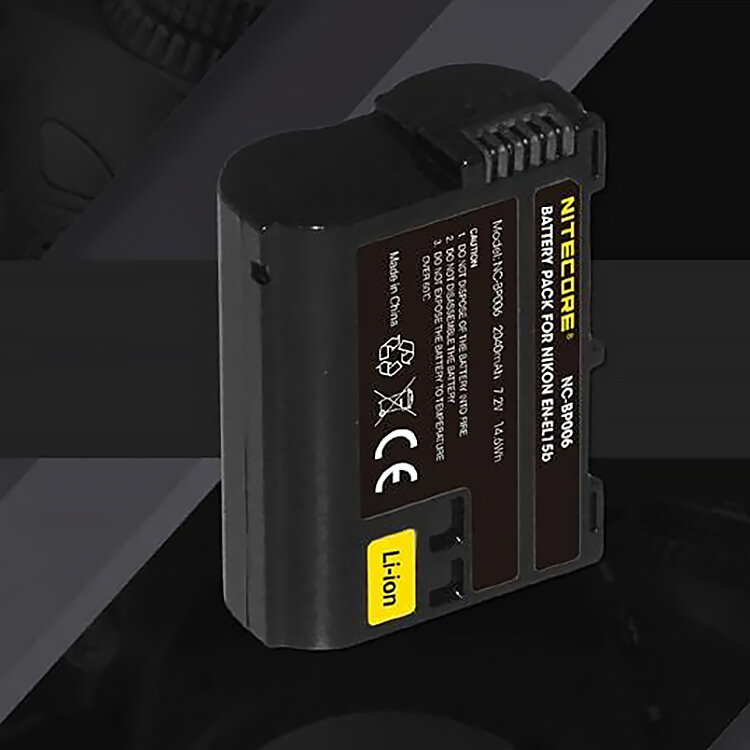 Аккумулятор Nitecore NC-BP006 является заменой для EN-EL15B предназначен для камеры Nikon, включая D600, D610, D750, D800, D800E, D810, D7000, D7100, D7200, 1V1, V1, D500, Z5, Z 6II, и Z 7II |