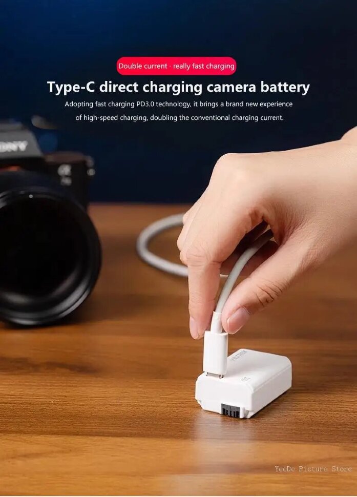 Аккумулятор стандарта LP-E6 для совместимой камеры Canon. Имеет встроенный порт Type-C с поддержкой Power Delivery 3.0, что позволяет заряжать его от провода без специального зарядного устройства |