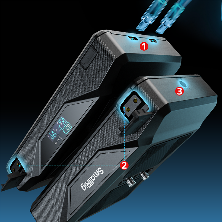 Мощность и безопасностьБлок оснащен двумя портами D-Tap, двумя Type-C (до 65 Вт каждый) и DC-портом для одновременного питания устройств. Цветной дисплей отображает статус заряда. Четыре элемента LG 5000 мАч и 8-уровневая защита цепи гарантируют стабильность, а перезаряжаются за 2 часа. Совместим со штативами, не нарушает баланс при съемке с рук |