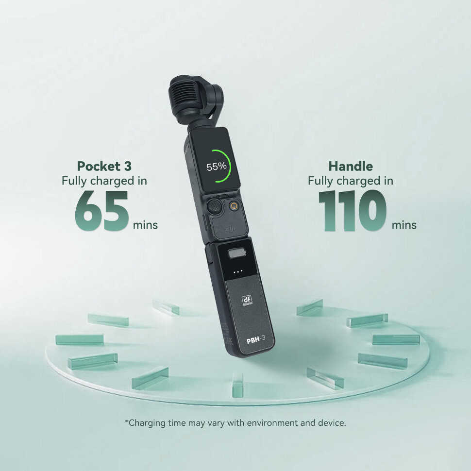 Энергоэффективность и эргономикаРукоятка PBH-3 подключается через порт Type-C к DJI Osmo Pocket 3, увеличивая время автономной работы. Оснащена двумя боковыми захватами для надежной фиксации камеры. Встроенная батарея емкостью 2800 мАч заряжает гаджет за 65 минут (активация кнопкой). Светодиодный индикатор отображает уровень заряда рукоятки. |