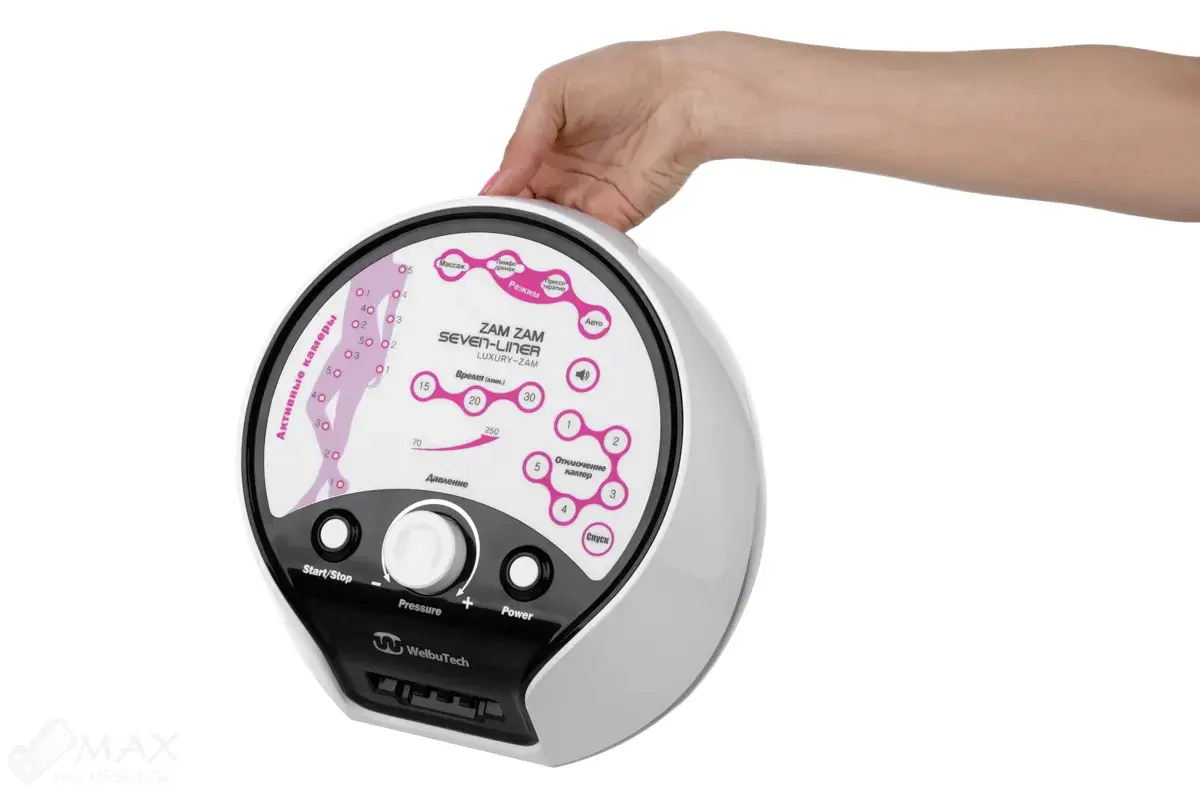 Преимущества и особенности аппарата физиотерапевтического для прессотерапии и лимфодренажа Seven-Liner ZAM ZAM модель LUXURY-ZAM комплект "Стандартный"Для проведения массажных процедур не обязательно тратить время и деньги на посещение специалистов. Если Вы хотите получать качественный массаж не выходя из дома, воспользуйтесь продукцией компании WelbuTech. Среди преимуществ Zam Luxury: