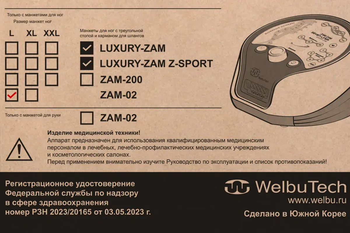 Вам не придётся докупать манжету отдельно, на нашем сайте есть выгодные комплекты Welbutech Zam 200S и Zam Luxury с антицеллюлитными шортами.