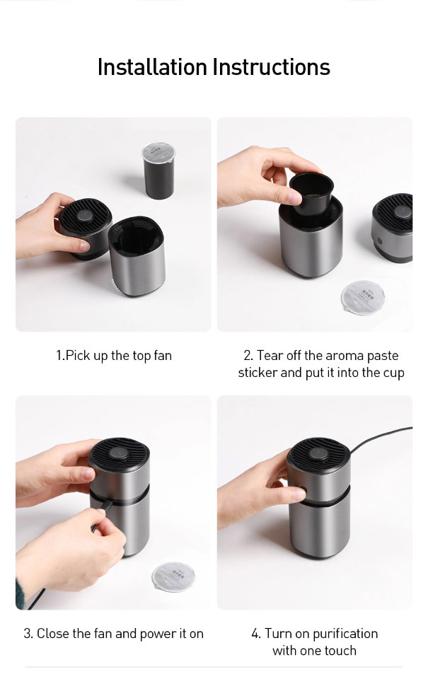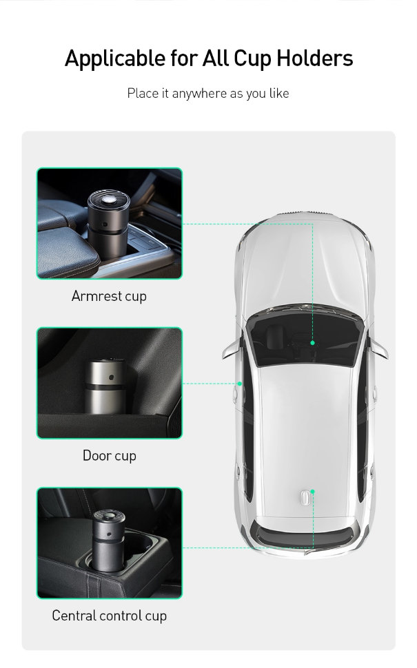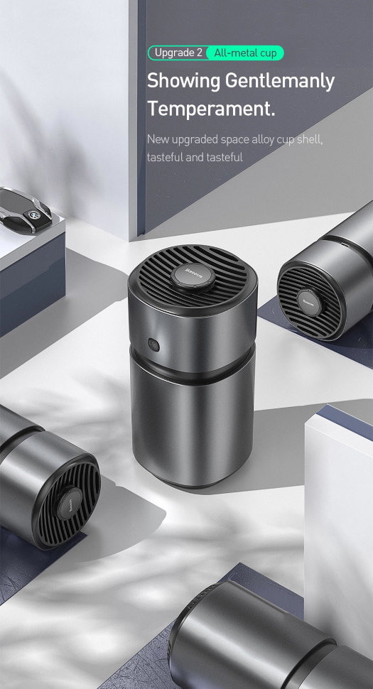 | Верхняя часть имеет встроенный мотор с вентилятором, благодаря которому вы сможете быстро заполнить салон приятным ароматом, либо использовать его для охлаждения лично себя. Работает гаджет очень тихо и не будет отвлекать или раздражать |