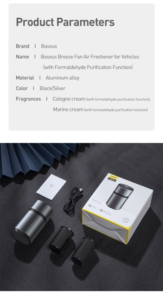 Ароматизатор с портативным вентилятором Baseus Breeze fan Air Freshener Чёрный