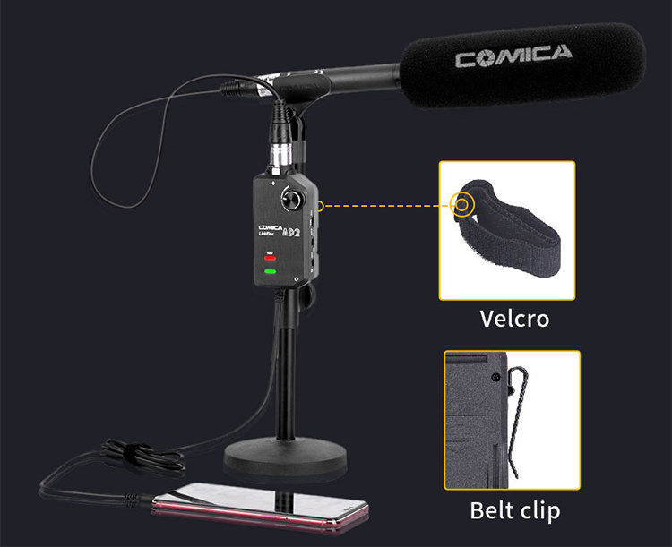 Модель имеет компактный корпус с тумблерами переключения режимов работы и ручкой регулирующей усиление сигнала. Предусмотрен отдельный выход для наушников, благодаря которому вы сможете следить за качеством звука прямо во время записи |