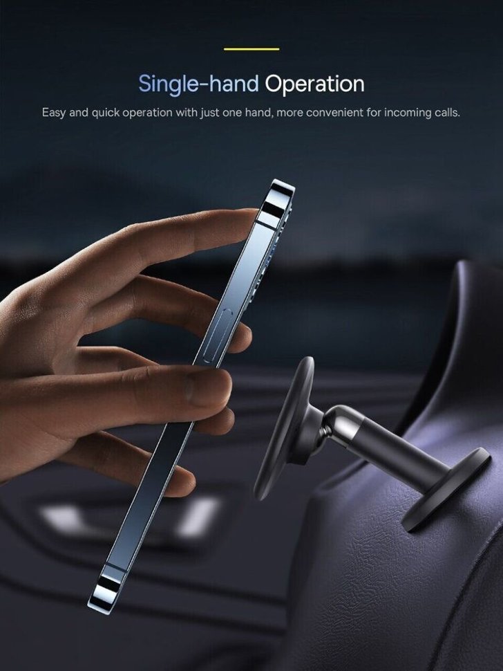 Удобство в использованииКонструкция с шарнирным соединением обеспечивает устройству возможность поворачиваться на 360 градусов, что позволит пользователю найти максимально удобное положение для пользования по время поездки прикрепленным смартфоном. Держатель работает за счет четырех магнитов, которые расположены внутри корпуса контактной площадки, а также магнитной пластины, фиксирующейся на задней крышке смартфона или его чехле. Данное решение позволяет легко и быстро крепить и снимать телефон одной рукой |