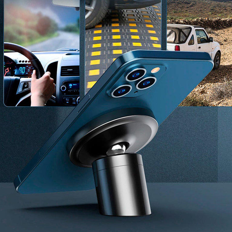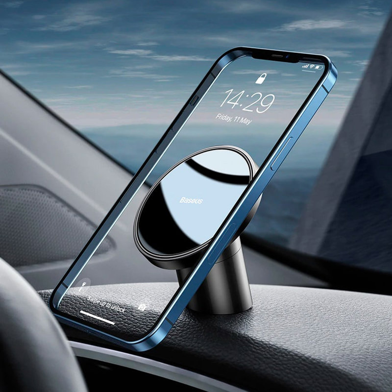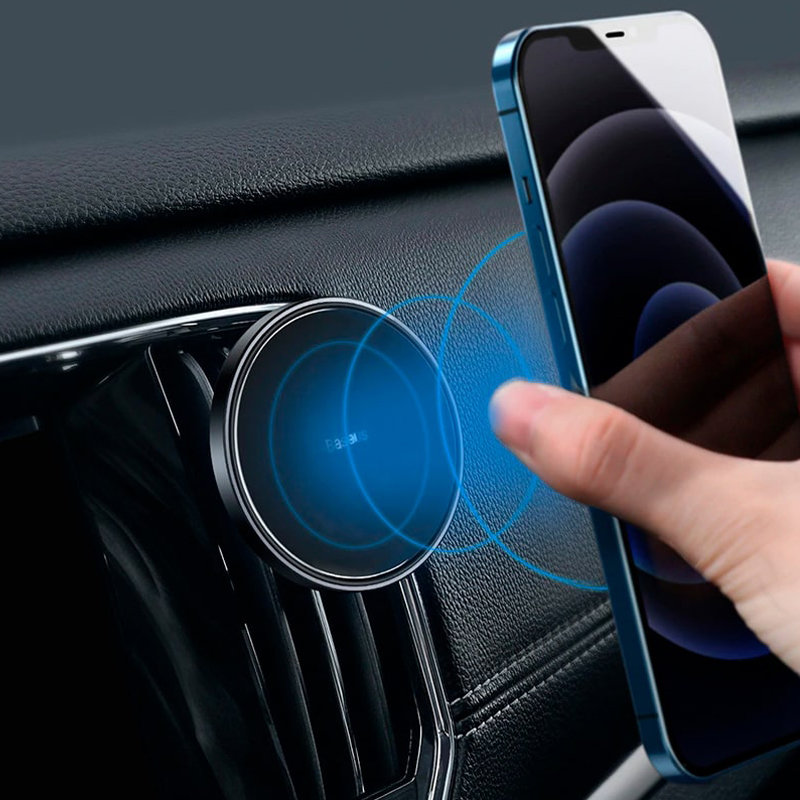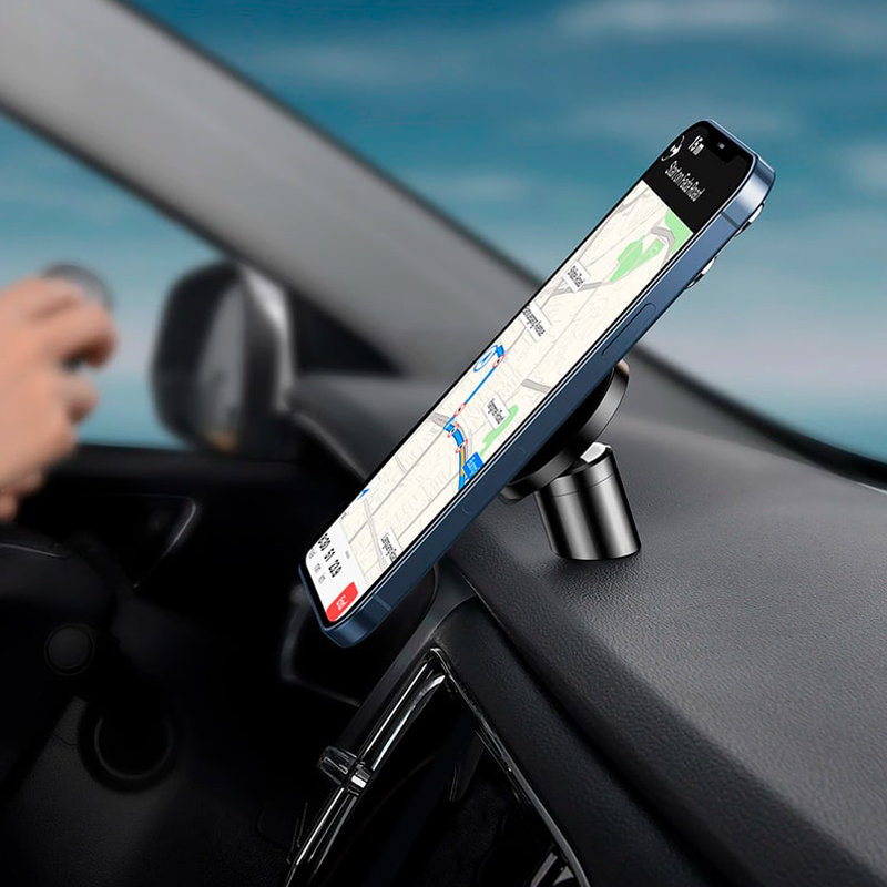 Функциональный магнитный держатель стандарта Apple MagSafe, обеспечивающий надежную фиксацию смартфона. Представленное устройство можно установить как на приборную панель, так и на дефлектор. Для фиксации на вентиляционной решетке используется ножка-прищепка, для установки на приборную панель двухсторонний скотч |