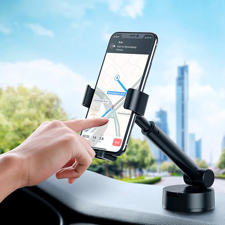 Отличительной особенностью держателя является наличие функционального кронштейна с телескопической системой. Благодаря ему смартфон можно выдвинуть на требуемое расстояние |