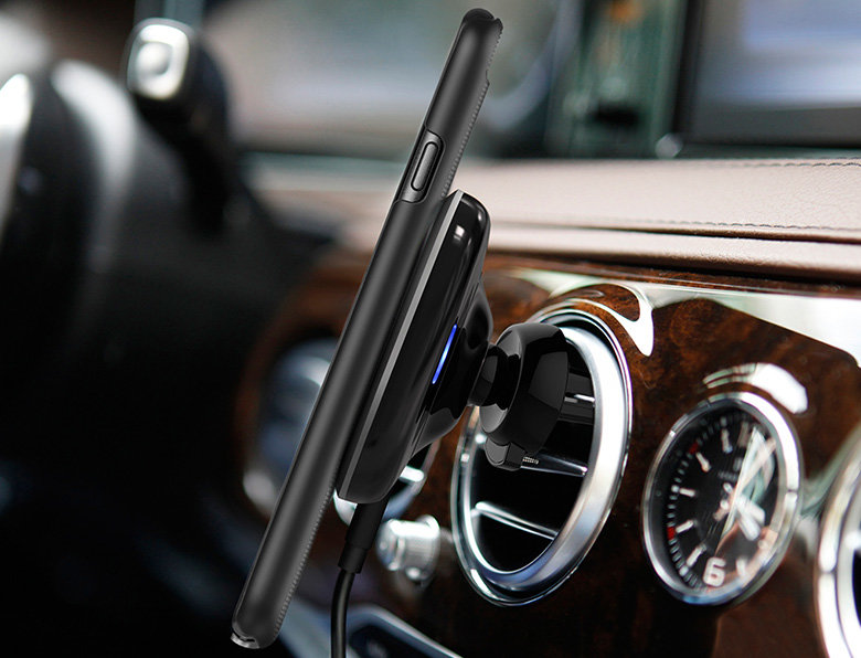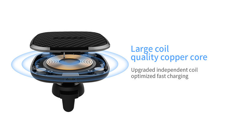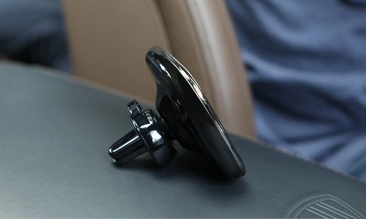 Самым главным нововведением стала внедренная технология быстрой зарядки и увеличенная до целых 10W мощность! Отличительной особенностью от модели A и C, стал особенный холдер у основания модели. Силиконовое покрытие не даёт ему скользить по гладким поверхностям, а при помощи кнопки вы сможете надежно закрепить устройство на решетке воздуховода |