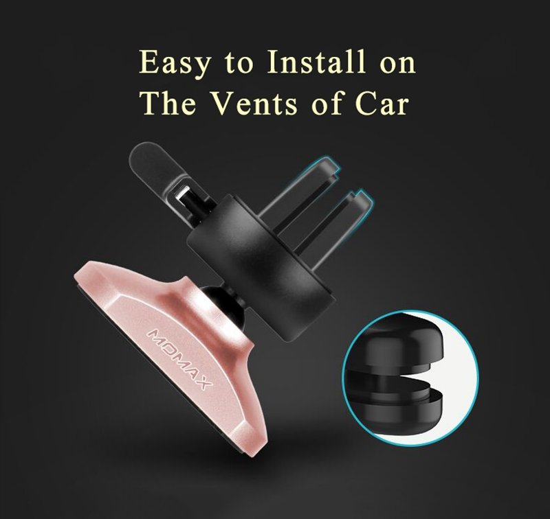 Простой и удобный автомобильный держатель от Momax прост в установке. В отличие от аналогичных моделей, для закрепления его на решетке воздуховода не нужно прижимать тугую кнопку, необходимо лишь повернуть зажим, когда это будет нужно |