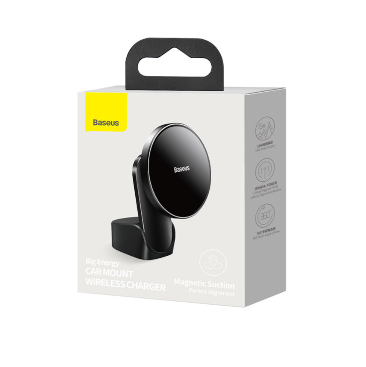 Автодержатель с беспроводной зарядкой Baseus Big Energy Чёрная
