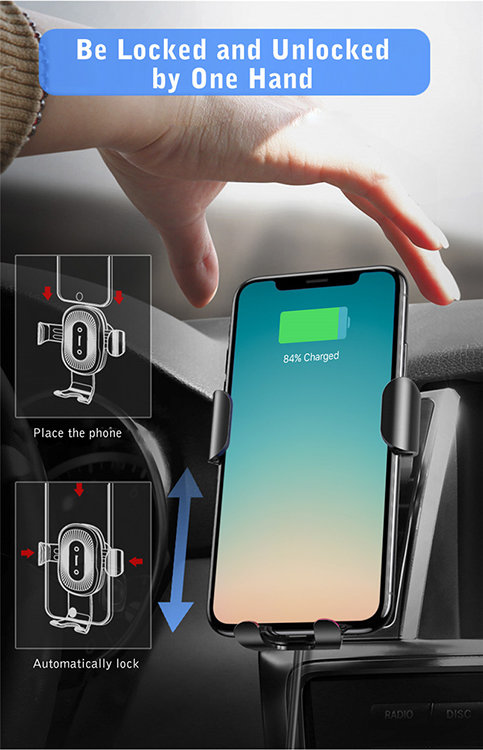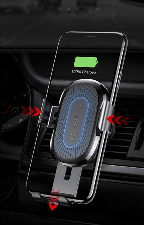 Гравитационный зажимУникальная конструкция автомобильного держателя позволяет устанавливать и снимать смартфон без усилий одним движением руки. Собственный вес смартфона зажимает его по бокам под воздействием гравитации |