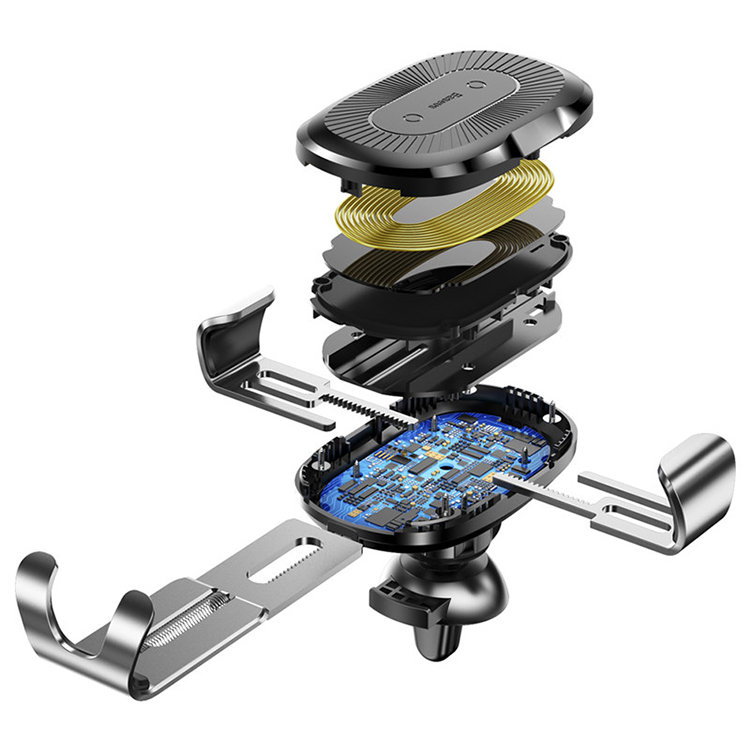 Автодержатель с беспроводной зарядкой Baseus Car Gravity Mount with Fast Wireless Charger Серебро