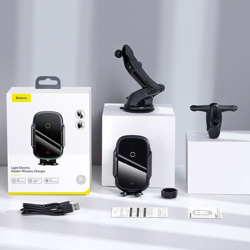 Автодержатель с беспроводной зарядкой Baseus Light Electric Holder (15W) Чёрный