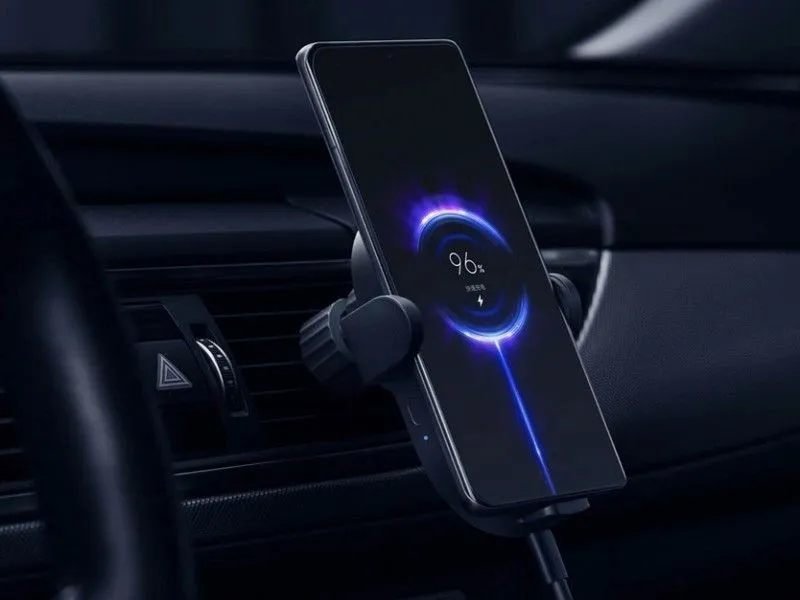 Беспроводное автомобильное зарядное устройство c максимальной мощностью 30 Вт. Теперь нет необходимости подключать кабель к устройству ― достаточно просто разместить свой мобильный телефон на зарядной панели, и зарядка начнется автоматически |