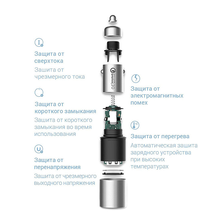 Многоступенчатая защитаВстроенный импортный чипсет DC/DC от американской компании обеспечивает необходимую защиту как зарядного устройства, так и подключенных к нему устройств. Защита от перенапряжения позволит предотвратить слишком высокое напряжение во время зарядки смартфона |