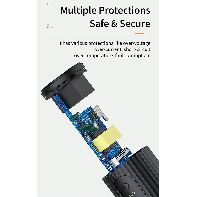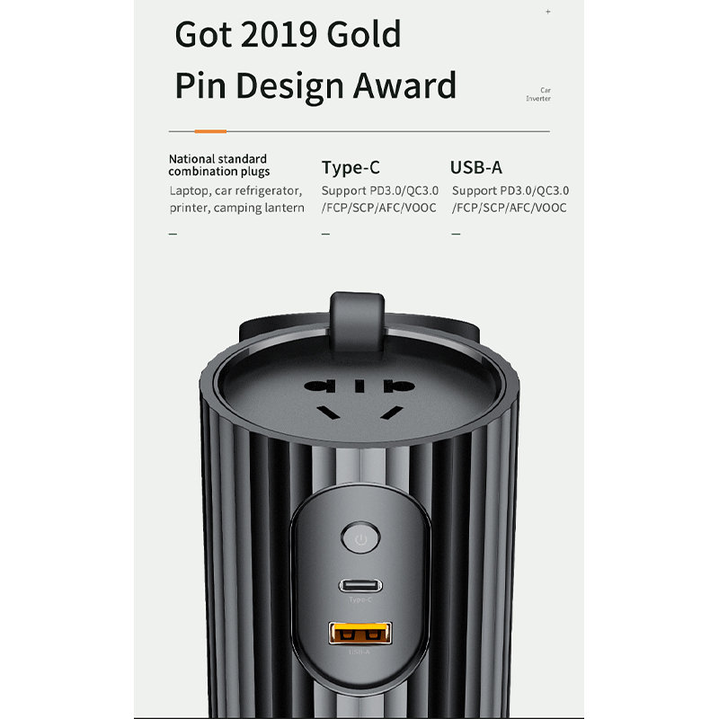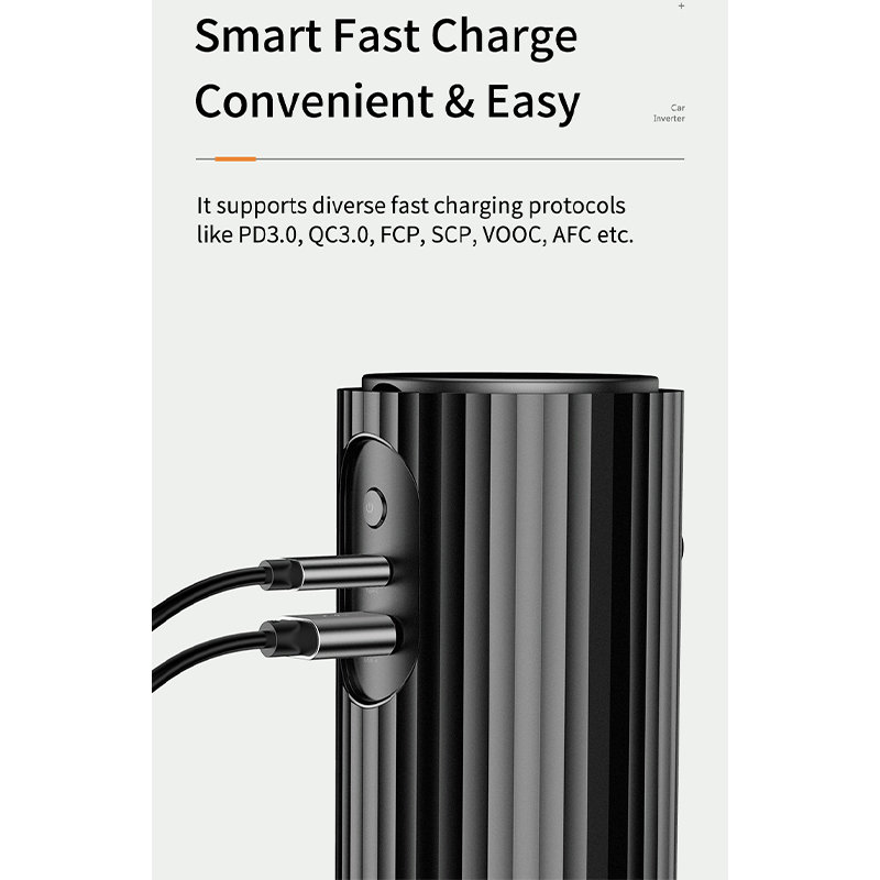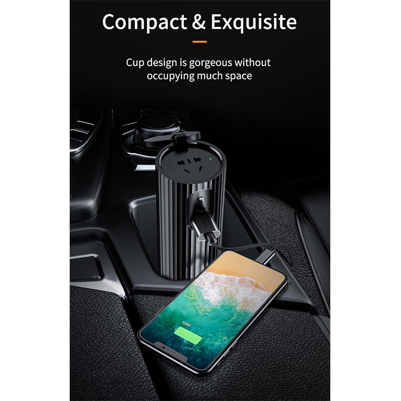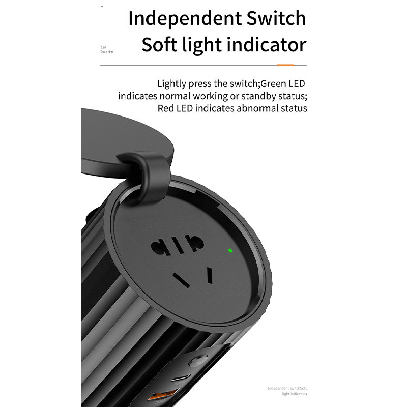 КомпактныйПортативный функциональный инвертор может стать настоящим спасением для автолюбителя, поскольку поможет вам пользоваться бытовыми приборами в дальней дороге, а также позволит заряжать сразу несколько гаджетов одновременно. Модель выполнена в компактном цилиндрическом корпусе и не займет много места. Розетки спрятаны под верхней крышечкой и туда не попадёт грязь и пыль, а кнопку включения с выходами находится на одной панели спереди |