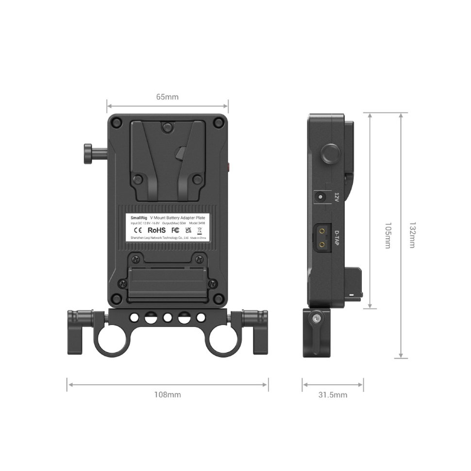 Батарейная площадка SmallRig 3498 V-Mount (Dual Rod Clamp)