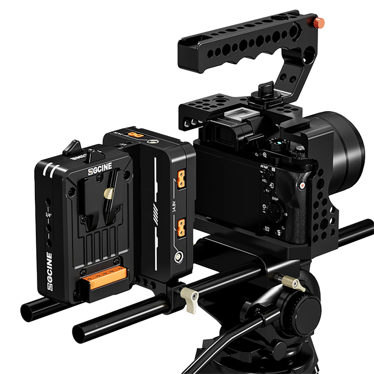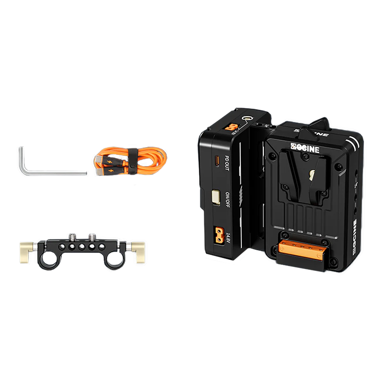 Батарейная площадка с возможностью установки сразу двух аккумуляторов V-mount для автономного питания камеры или другого оборудования. На корпусе расположен порт Type-C PD с максимальной мощностью в 100 Вт, а также Lemo 2-Pin и два D-Tap с выходом D-Tap 14.8В/10A |