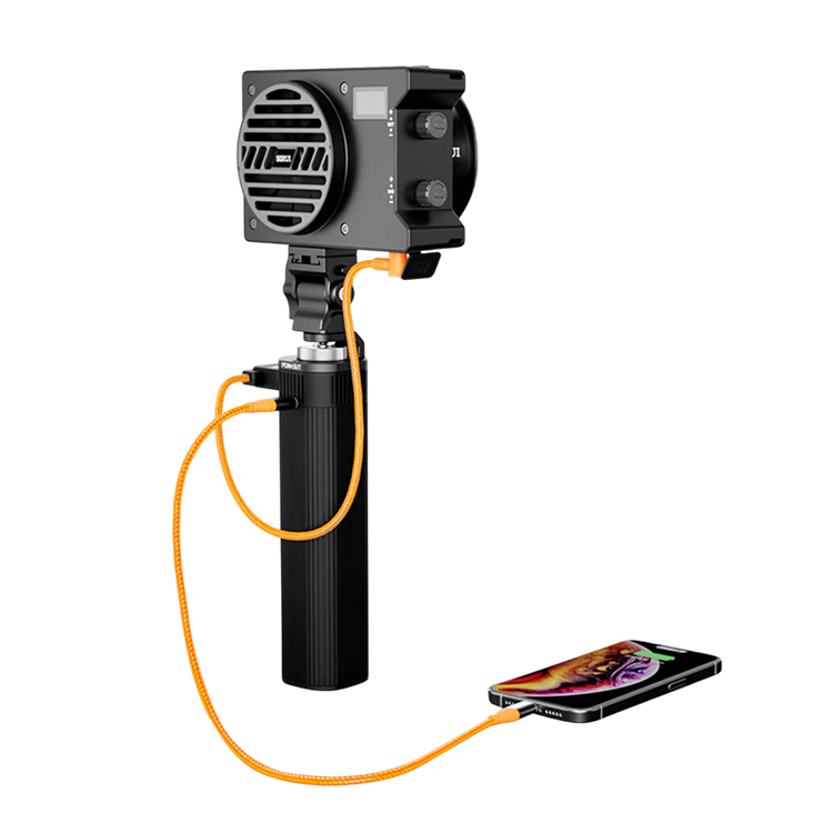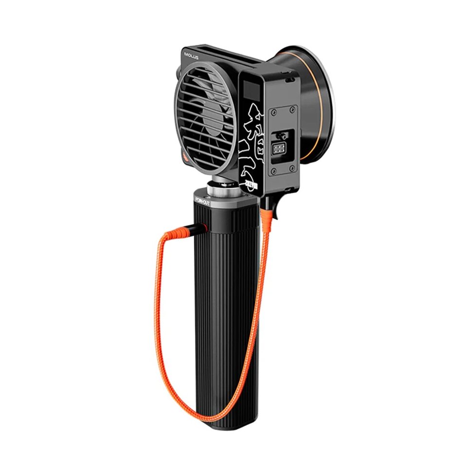 Рукоятка со встроенным аккумулятором на 89 Втч спроектирована специально для автономного питания осветителя. В верхней части расположено стандартное крепление для установки портативного и студийного света |