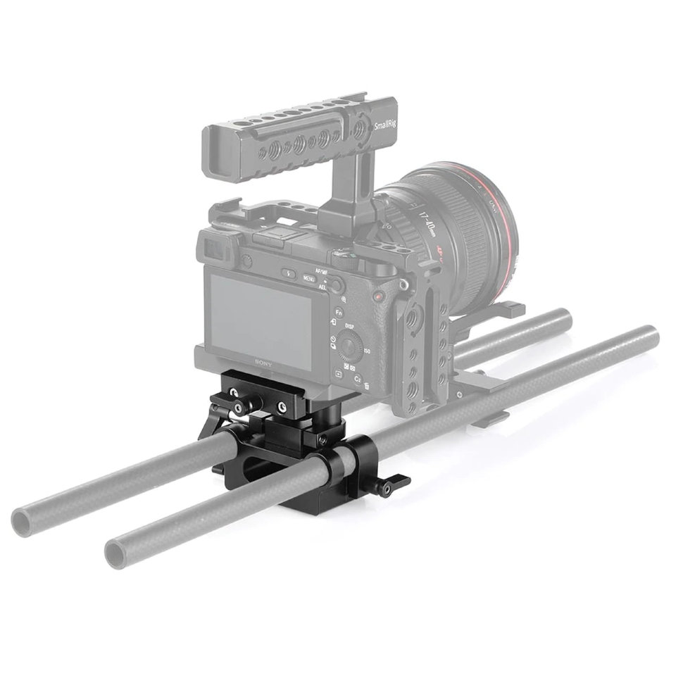 Базовая площадка с креплением для направляющих 15 мм. Представленное устройство может регулироваться по высоте, что гарантирует комфорт при работе. Комплектующий элемент предназначен для беззеркальных и зеркальных камер. Совместима с QR-пластиной стандарта Arca |