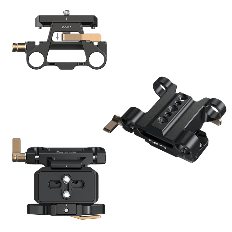 Функциональность и конструкцияБазовая площадка SmallRig 5365 оснащена зажимами для двух 15-мм направляющих, фиксируемыми двойным механизмом блокировки. Это позволяет расширять сборку компендиумом, моторами фоллоу фокуса, хватами и прочим оснащением. Интегрированная платформа Arca-Swiss с быстросъемной пластиной обеспечивает мгновенную установку камеры |