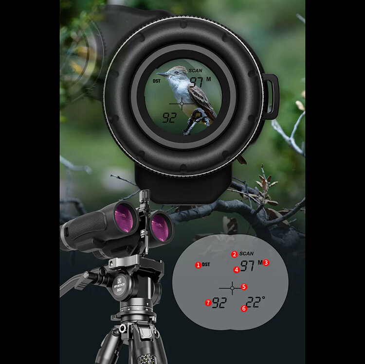 Лазерный дальномер с интеллектуальным замеромВстроенный лазерный дальномер класса 1 (длина волны 905 нм) измеряет расстояние до 1800 метров с точностью до 0,5 метра, автоматически корректируя погрешность при углах наклона до 90°. Результаты отображаются в правом окуляре с помощью OLED-дисплея, который сохраняет видимость даже при ярком солнечном свете. Лазер работает в двух режимах: мгновенный замер (0,3 сек) и сканирование для отслеживания движущихся целей. Питание от батареи CR2 обеспечивает до 5000 измерений на одном заряде, а энергосберегающая функция отключает дисплей через 10 секунд бездействия. Безопасный для глаз класс 1 делает устройство универсальным для охоты, гольфа или тактических задач |