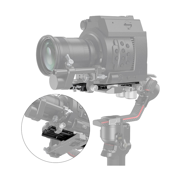 Быстросъемная функциональная пластина для стабилизатора DJI Ronin-S/RS 2/RS 3/RS 3 Pro. Представленная модель имеет крепление 1/4" и 3/8" для установки камеры, и дополнительные отверстия для добавления противовеса |
