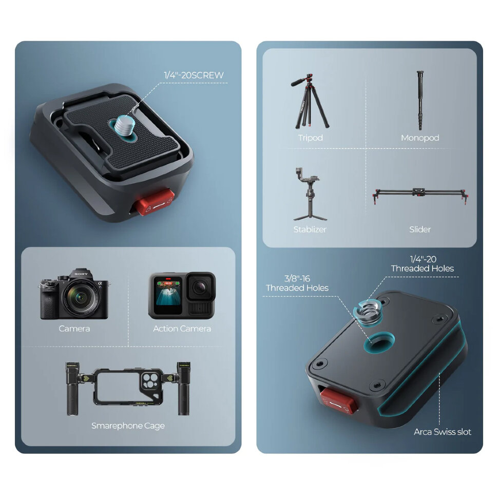 Быстрая Установка и СовместимостьБыстросъемное крепление Freewell Tripod Quick Release Clamp обеспечивает установку камеры на штатив за секунды благодаря совместимости с системой Arca-Swiss. Его прочная металлическая конструкция универсальна и подходит для большинства штативов и стоек, обеспечивая эффективность работы фотографов в любых условиях. Встроенный скрытый инструмент позволяет надежно затянуть пластину без использования дополнительных приспособлений, а компактный вес крепления всего 70 грамм не утяжеляет комплект |
