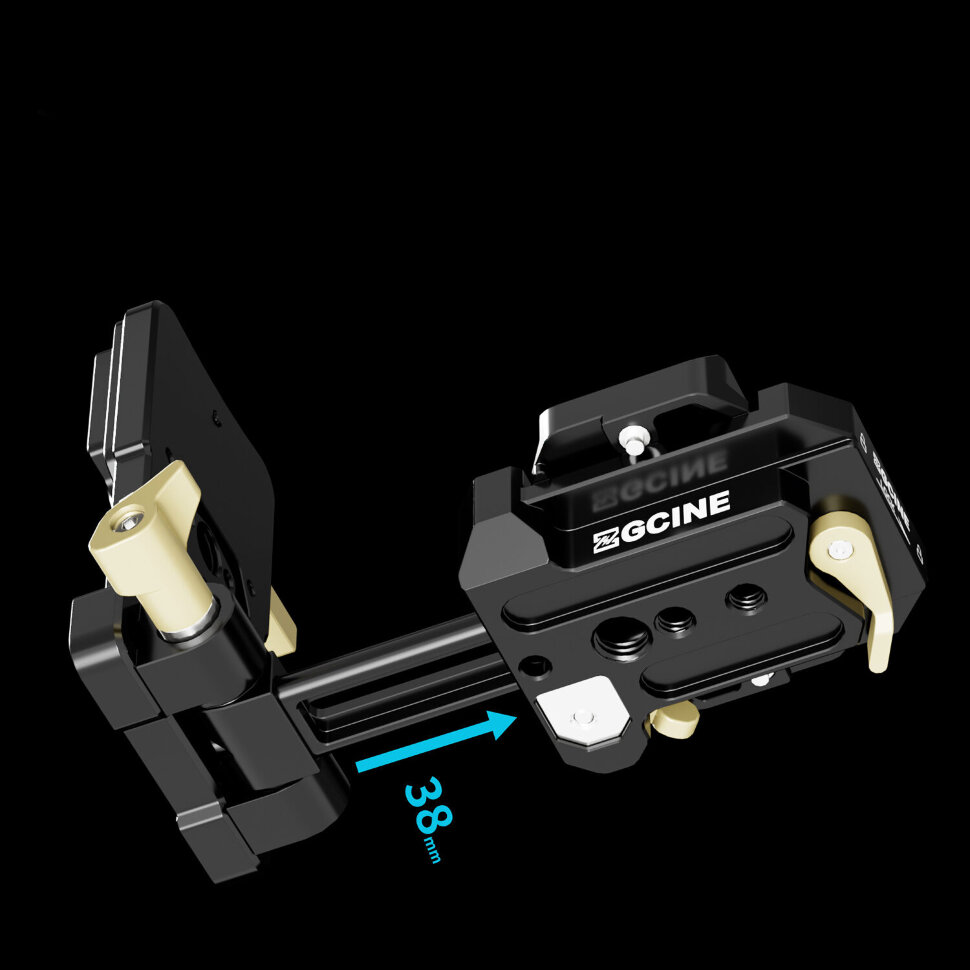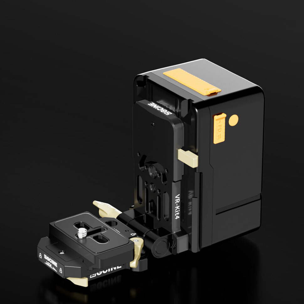 Специальная система разработана для мгновенной установки камеры и подключения питания от внешнего источника. Базовая часть имеет зажим площадки Arca Swiss, а также держатель V-mount аккумулятора. Адаптер можно отрегулировать по отступу на 38мм, а также наклонить в диапазоне 90° для комфортной установки камеры. Устройство не имеет портов питания и контактов |