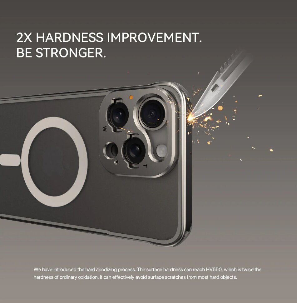 Стильная защитаFotorgear Pro II создан для надежной защиты iPhone 16 Pro Max, сочетая прочность и стиль. Чехол изготовлен с применением технологии двойного анодирования, что увеличивает его твердость в два раза по сравнению с обычными покрытиями (HV550). Это эффективно предотвращает появление царапин и повреждений от твердых предметов. Четыре усиленных угла с воздушной подушкой обеспечивают дополнительную защиту от ударов при падении. Корпус остается легким, а эргономичный дизайн позволяет удобно удерживать смартфон в руке |